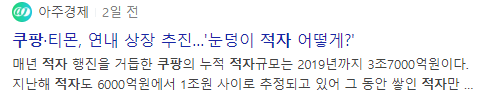 앞으로 어떤 움직임을 보여줄지 모르겠지만, 쿠팡 나스닥 상장 뉴스나, 쿠팡의 소식이 들려옴에 따라 크게 변동을 줄 것 같습니다. 다만... 쿠팡자체가 아직까지도 적자를 보며 운영중이기 때문에 ㅠ 조심스럽게 매매를 하는게 좋아보이네요.